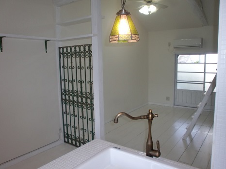 5部屋は、蛇口やドアノブ、照明器具などアンティーク小物でそれぞれの表情を出す。 女性向きにデザインされた8号室は、白を基調とした空間や、ヨーロッパの古城を思わせるアイアンパネルが特徴的だ。
